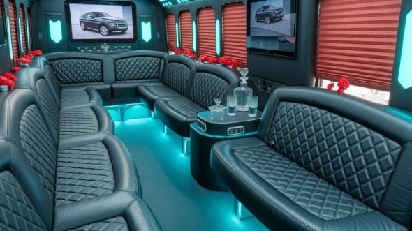 Our sprinter limousine rentals offer a variety of luxury amenities to make your trip as fun and comfortable as possible. Depending on availability and the specific vehicle you book, your sprinter limo may come equipped with plush wraparound or bench seating, high ceilings to maximize space, premium sound systems, onboard TVs and DVD players, and even built-in bar areas with ice bins and cup holders for keeping your favorite beverages cool. You can also request other amenities like WiFi, power outlets for keeping your mobile devices charged, AUX cord/Bluetooth connectivity so you can stream music from your own playlists, and fun features like laser lights and LED fiberoptic lighting. If you have any special amenity requests or would like to learn more about what’s available, just call our team at 217-432-2600! We’re available 24/7 and always happy to help.